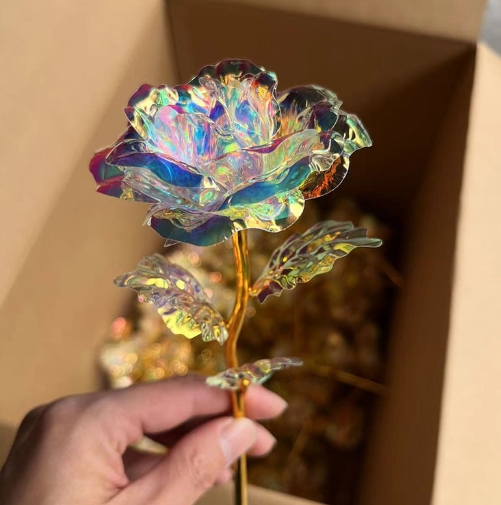 Colorful Sparkling Rose Laser Gold Foil Flower Bouquet